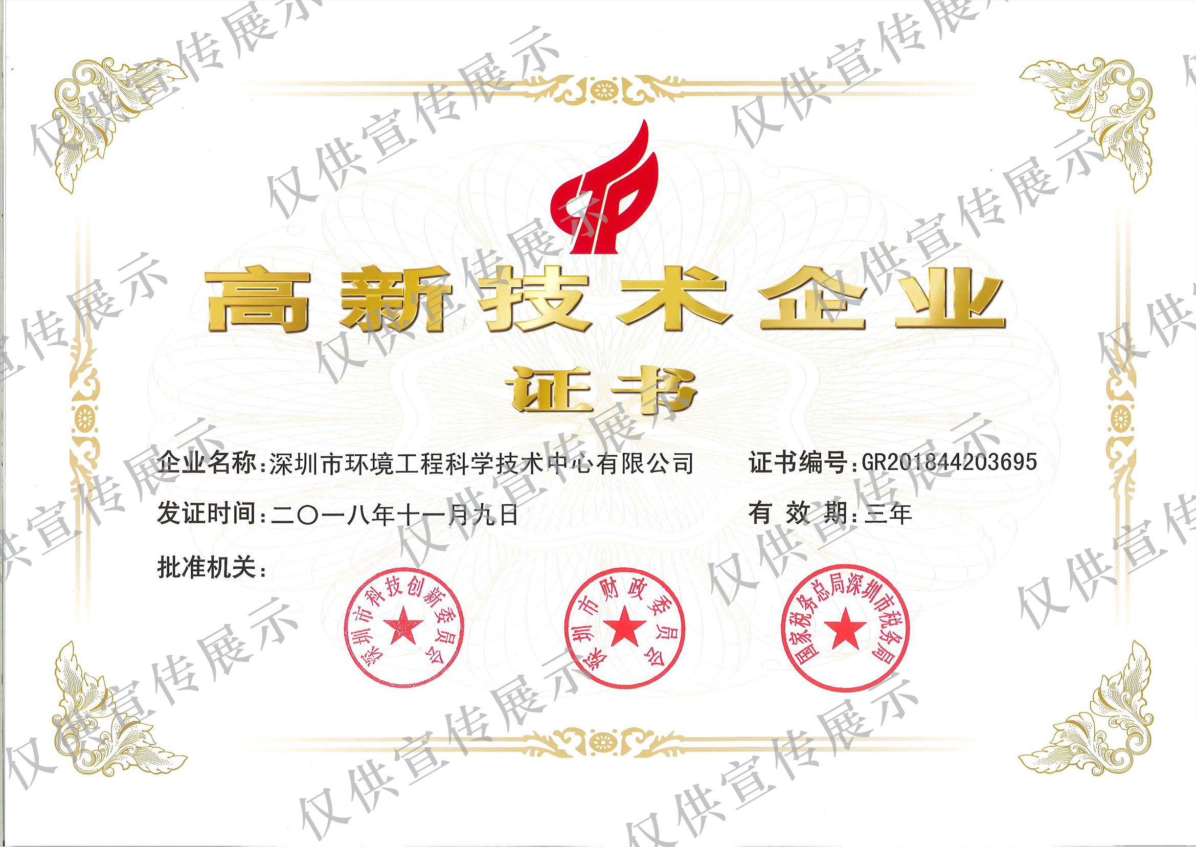 • 國家高新技術企業證書